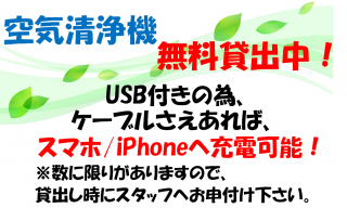 先着順ではございますが、空気清浄機無料貸し出し致します。