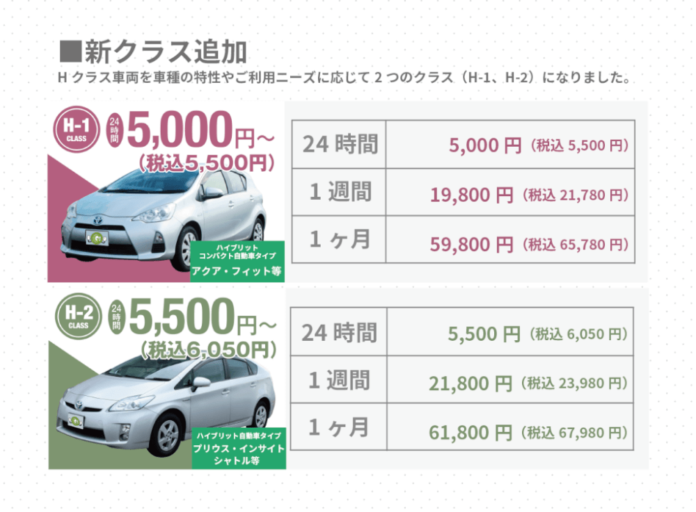 C1クラスの料金改定、Hクラス→H1クラス、H2クラスへの変更が対象となります。