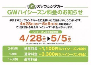格安レンタカーのガッツレンタカー!GWや夏季、年末年始の営業情報や入庫車情報など、ガッツレンタカー MEGAドン・キホーテ埼玉三郷店から皆様へのお知らせです。