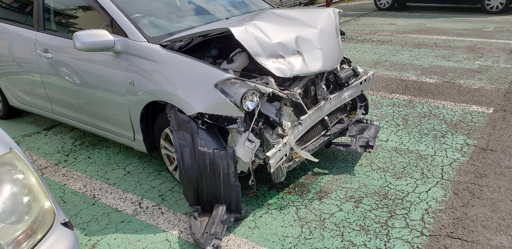 お車は見ての通り廃車になってしまいました。運転者様は怪我もなくレンタカーで帰っていきましたが、連日報道でもあるように、もし相手がいたらと怖くなりますよね?自分だけで済まなくなるのが交通事故です。