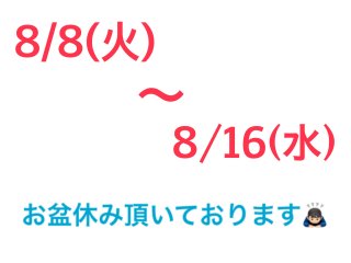 【8/8(火)~8/16(水)までお盆休みいただいております】