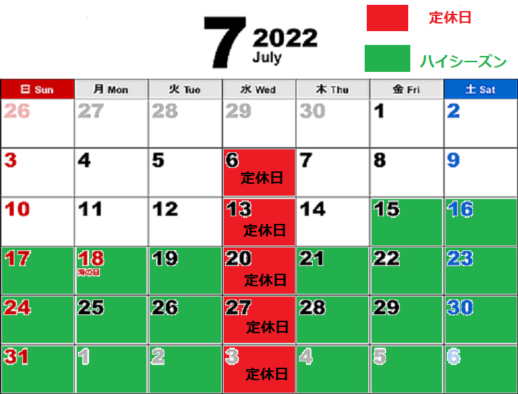 【堺なかもず店】2022年7月の定休日とハイシーズンのお知らせ