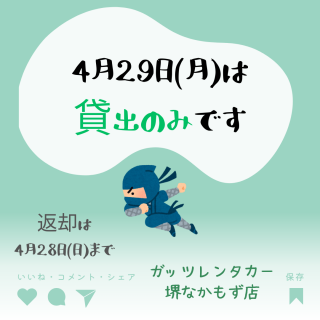 最終営業日:4月29日(月)は、貸出のみとなっています。