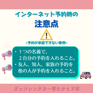 【堺なかもず店】インターネット予約時の注意点について