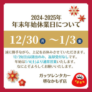 【堺なかもず店】2024-2025年 年末年始休業日について
