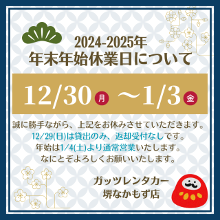 【堺なかもず店】2024-2025年 年末年始休業日について