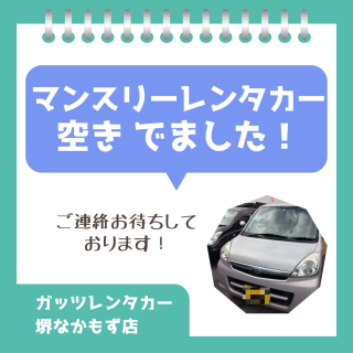 【堺なかもず店】マンスリーレンタカー 空き でました!