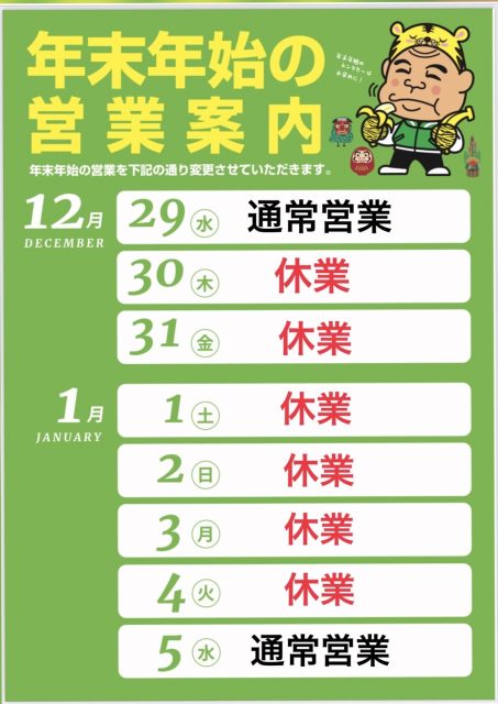 「奈良橿原店」ハイシーズンと年末年始のお知らせ
