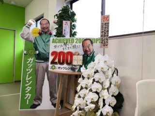 沼津駅北店はガッツレンタカーの中でも200店舗目の出店とあって盛大にお祝いしていただきました。