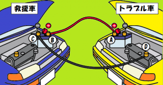 バッテリーが上がってセルモーターを回す電力がない車に電力が十分な車から電気を分けてもらって充電してエンジンをかけちゃえば良い!ということですw
