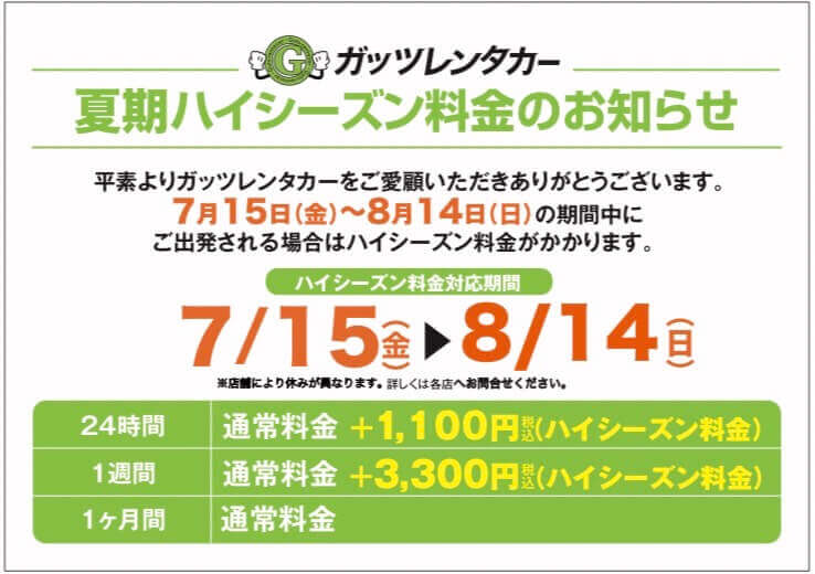 格安レンタカーのガッツレンタカー!GWや夏季、年末年始の営業情報や入庫車情報など、ガッツレンタカー 小田原店から皆様へのお知らせです。