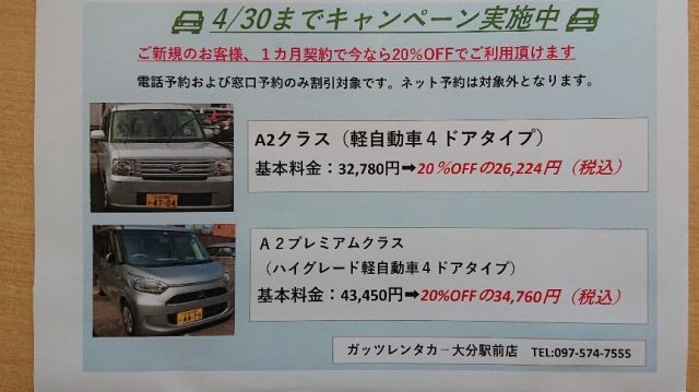 格安レンタカーのガッツレンタカー!GWや夏季、年末年始の営業情報や入庫車情報など、ガッツレンタカー 大分駅前店から皆様へのお知らせです。