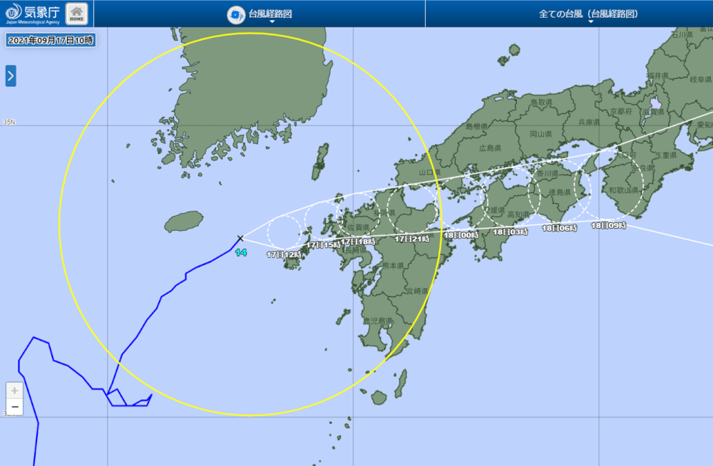 台風の接近に伴って、大分県では17日夜遅くにかけて非常に強い風が吹き、海上ではうねりを伴いしけとなる所があるでしょう。