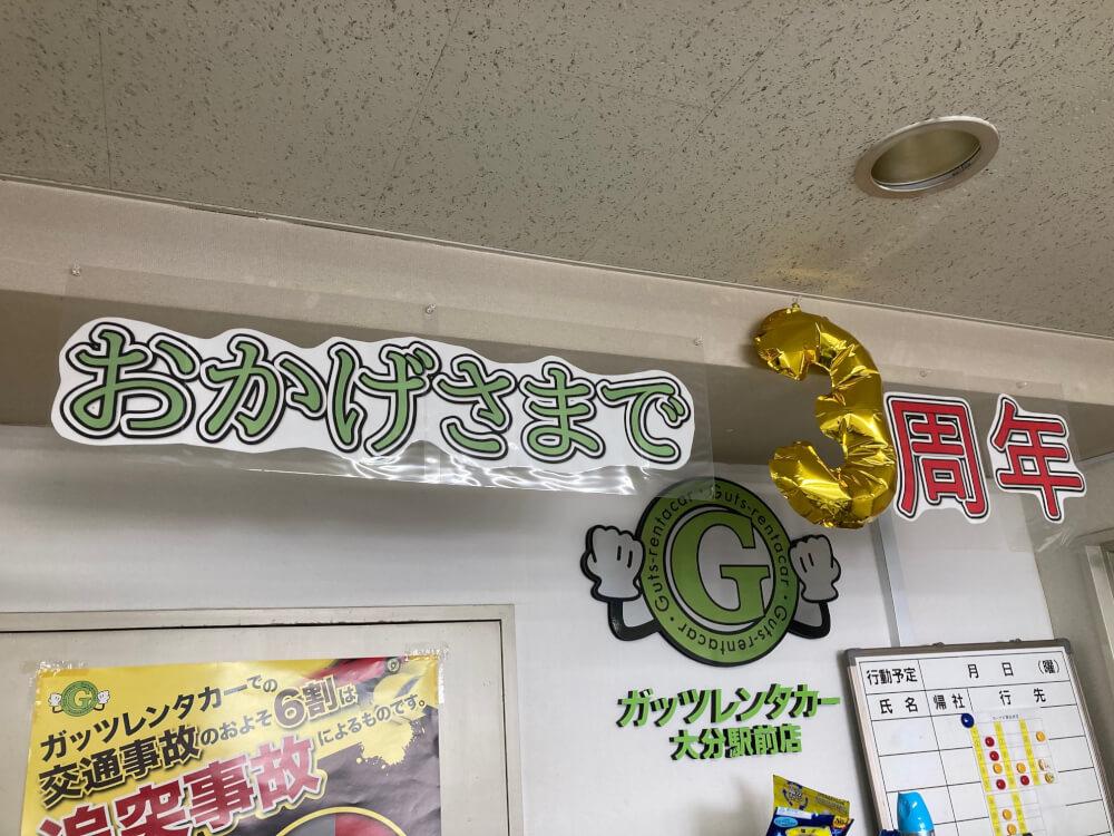 本日、8/1はガッツレンタカー大分駅前店は3周年です🎊