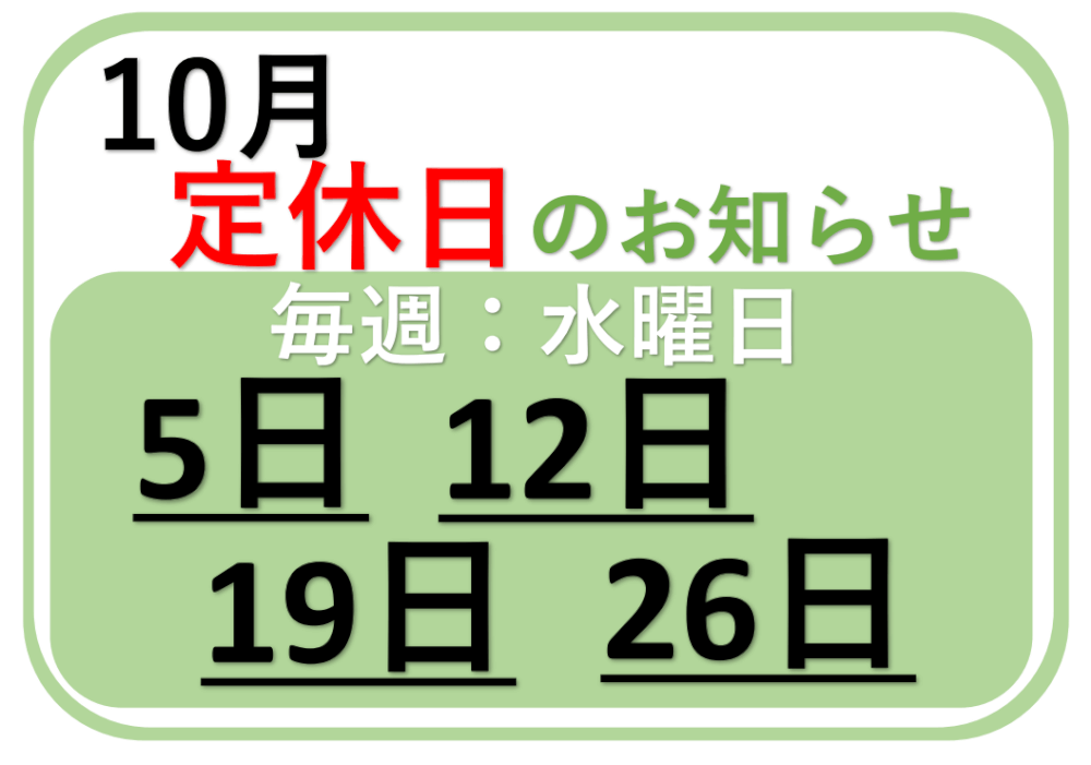 明日、10/5(水)は定休日となっております。