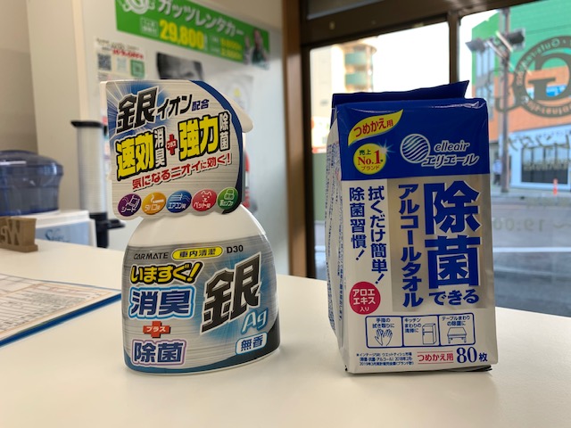特にお客様の手が触れるハンドルまわりやシフトノブにはアルコールシートや除菌スプレーを使って清掃✨