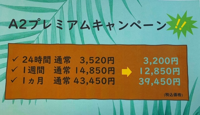 最後のお得な機会にぜひ、A2プレミアムクラスのお車をご利用されてみてはいかがでしょうか(^^♪