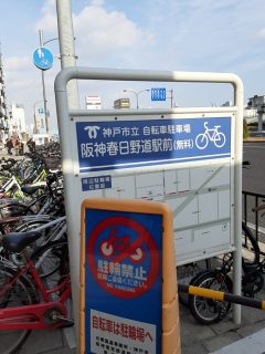 三宮店に自転車でおいでいただくお客さまに近隣の駐輪場をご案内します。一番近いのは店舗から徒歩約3分の阪神春日野道駅前の駐輪場です。無料となっていますので自転車でおいでの際はご利用下さい。