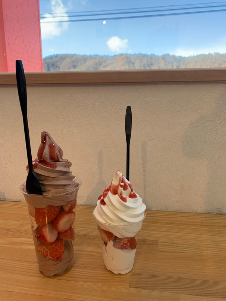 ソフトクリームの中にふんだんに🍓を投入してくれます。