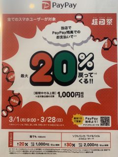 【札幌中央店】PayPayユーザー様必見!!20%還元実施中♪