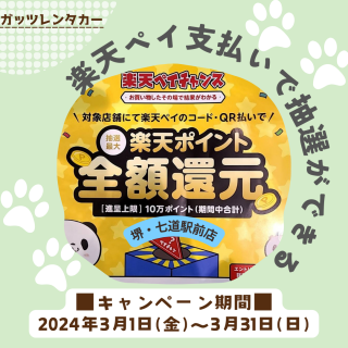 【堺・七道駅前店】楽天ペイチャンス!楽天ペイ払いで、”楽天ポイント全額還元”の抽選!!