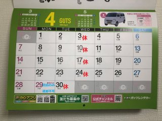 4月、5月度の定休日のお知らせです!
