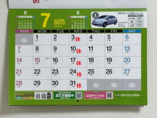 7月度定休日のお知らせです。