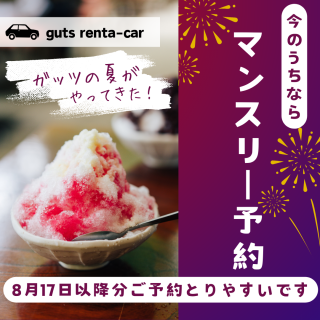 8月17日以降のマンスリー予約が取りやすくなっています!
