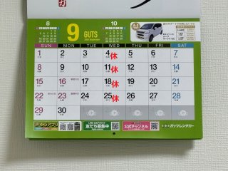 9月度定休日のお知らせです。