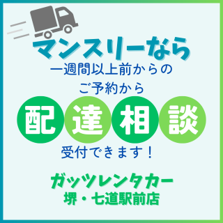 【堺・七道駅前店】マンスリーなら一週間以上前からのご予約で、”配達相談”受付できます!