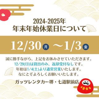 【堺・七道駅前店】2024-2025年 年末年始休業日について