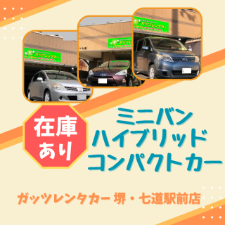 格安レンタカーのガッツレンタカー!GWや夏季、年末年始の営業情報や入庫車情報など、ガッツレンタカー 堺・七道駅前店から皆様へのお知らせです。