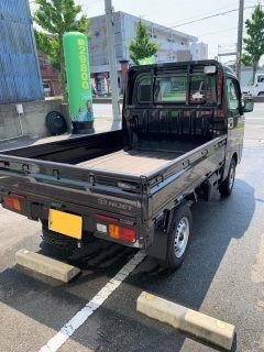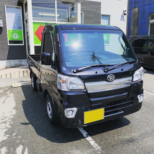 軽トラックといえばイメージカラーは白ですが、このちょっとおしゃれなハイゼットはブラックボディです(笑)