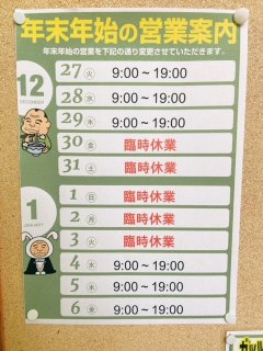 本年12月は29日9時~19時まで営業