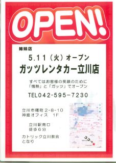 【立川店】ガッツレンタカー立川店オープンです(^^♪