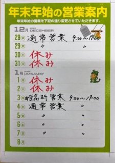 年末年始のお休みでご不便をおかけいたしますが