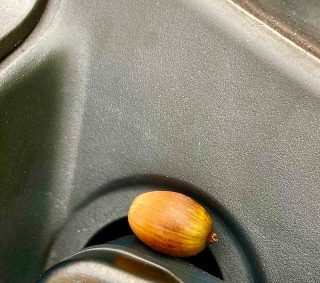 朝の「車両のチェック・清掃」時に、フロントガラスのところにあった「どんぐり」に朝から癒されました😊