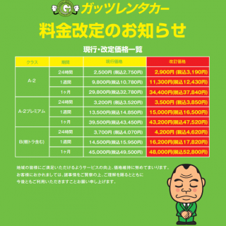 格安レンタカーのガッツレンタカー!GWや夏季、年末年始の営業情報や入庫車情報など、ガッツレンタカー 高城駅前店から皆様へのお知らせです。