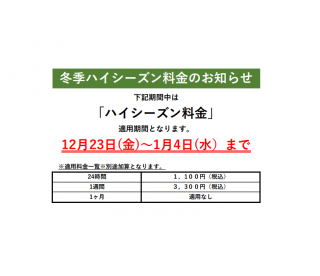 12月23日(金)よりハイシーズン料金が加算されます