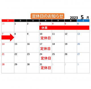 明日、5/17(水)は定休日となっております。