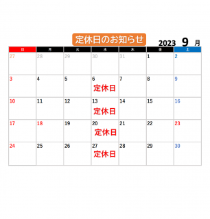 明日、9月13日(水)は定休日となっております。
