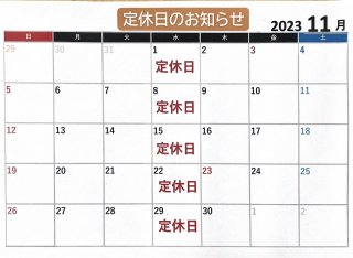 明日、11/9(水)は定休日となっております。