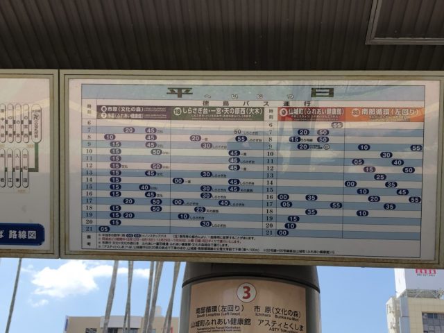 徳島駅から徳島市営バス 3番のりばに行きます。