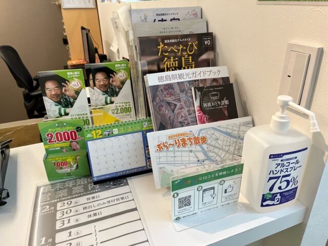 店内のカウンターに徳島での観光パンフレットを用意しました(”ω”)ノ