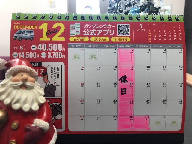 12月度の営業日のご連絡です🎄