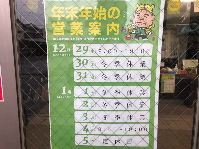 12月の営業日ですが、12月30~1月3日まで冬季休業となります🎍