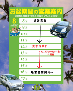 ※休業明けは8月16日(土)より通常営業いたします。
