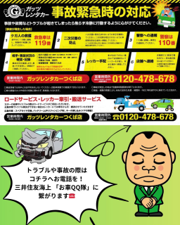 事故や故障トラブルの際は、三井住友海上お車QQ隊までお電話いただきますようお願い申し上げます。