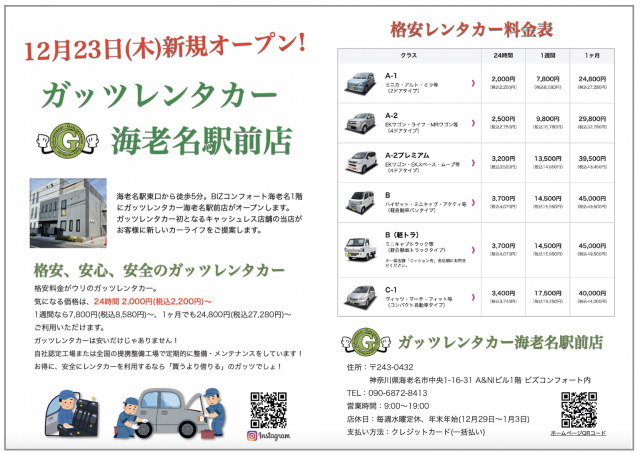 格安レンタカーのガッツレンタカー!GWや夏季、年末年始の営業情報や入庫車情報など、ガッツレンタカー 座間駅前店から皆様へのお知らせです。
